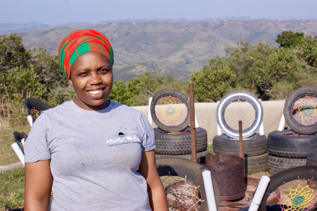 I am very creative and love to sew and therefore I make clothes for people in the village using bright Pondo patterns.